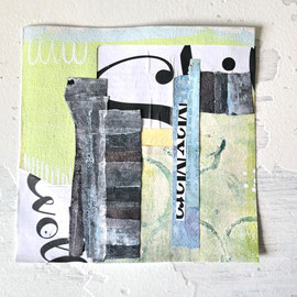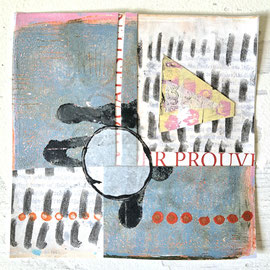 Diese Collagen auf Papier sind 15 x 15 cm, ohne Passepartout und ungerahmt