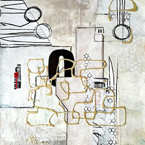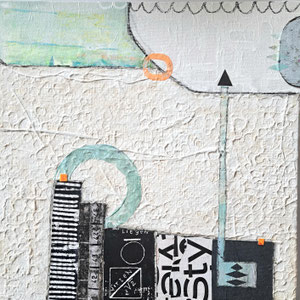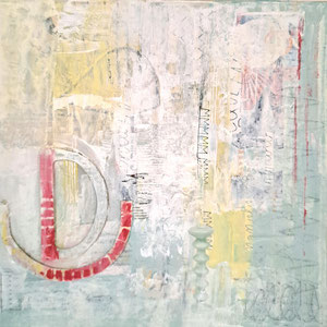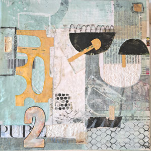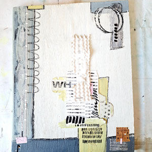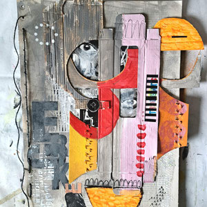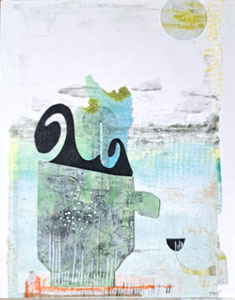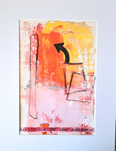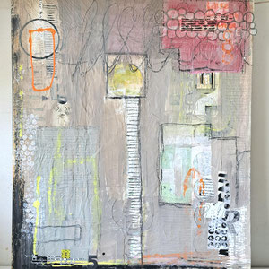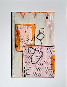 Verwendete Materialien: Gelliprints, Papierschnipsel, Acrylfarben und u. a. Tempera, Graphitstift, Acrylstift